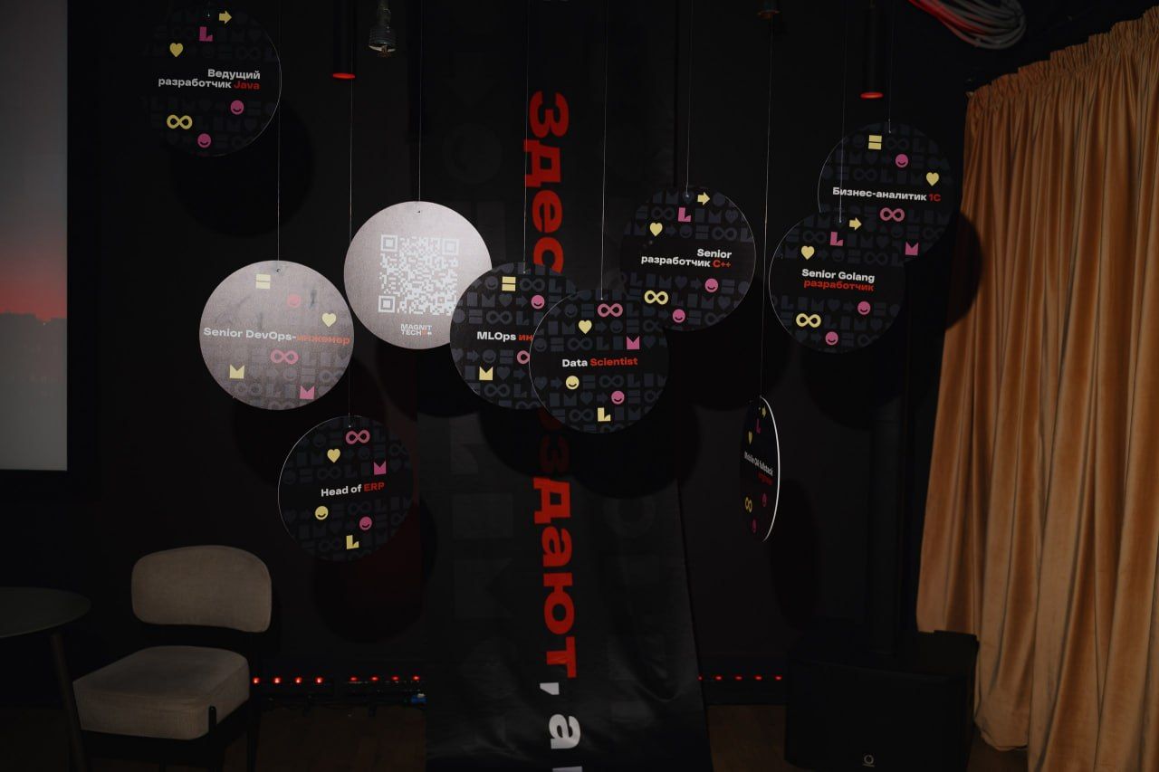 Для любителей ярких воспоминаний работала фотобудка, более смелых гостей ждал открытый бар с коктейлями, а зеркало с надписью «Выглядишь как баг. Но крутой» стало крутой фишкой вечера. Еще одним интересным решением стала HR-зона с вакансиями. Здесь все желающие могли официально предложить свою кандидатуру на одну из свободных позиций, просто перейдя по QR-коду.